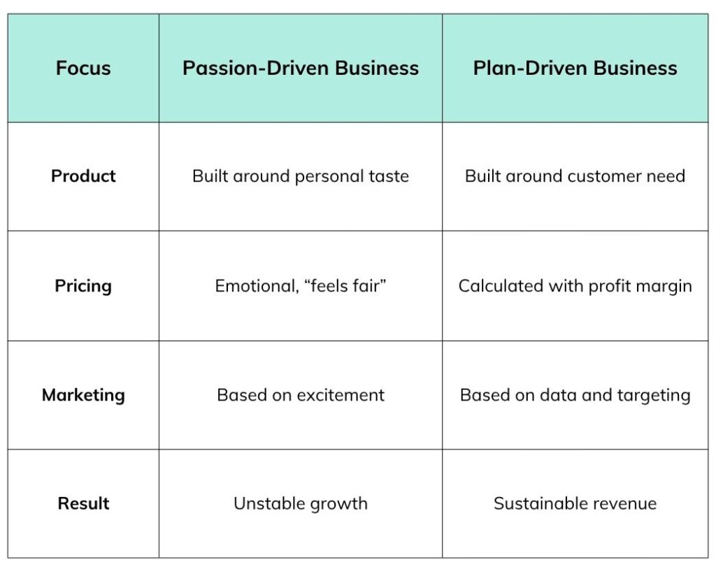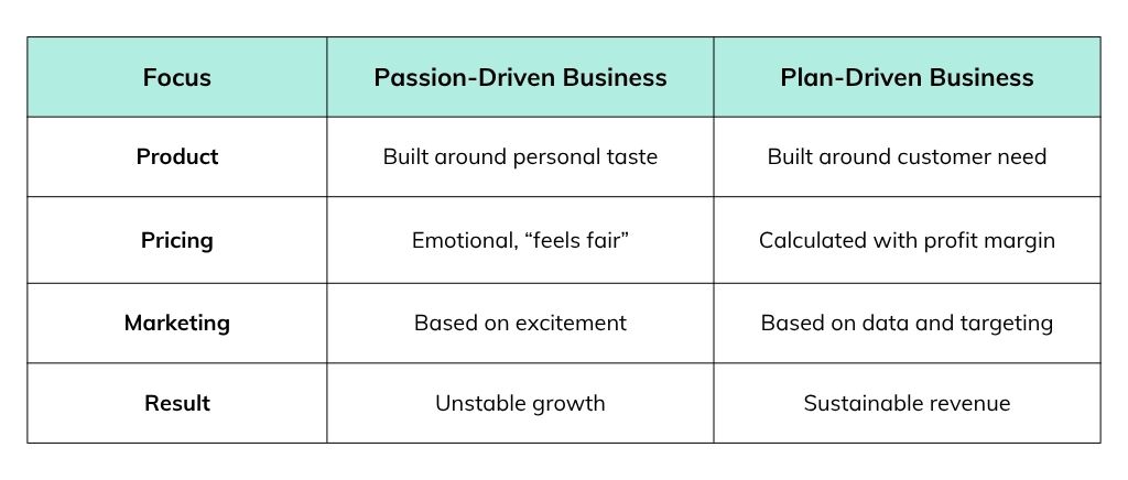 Passion doesn’t need to disappear. It needs to be managed. It needs a framework. A business plan isn’t there to block emotion. It’s there to protect it from itself. Because when the plan is solid, passion finally has a place to grow, not burn out.